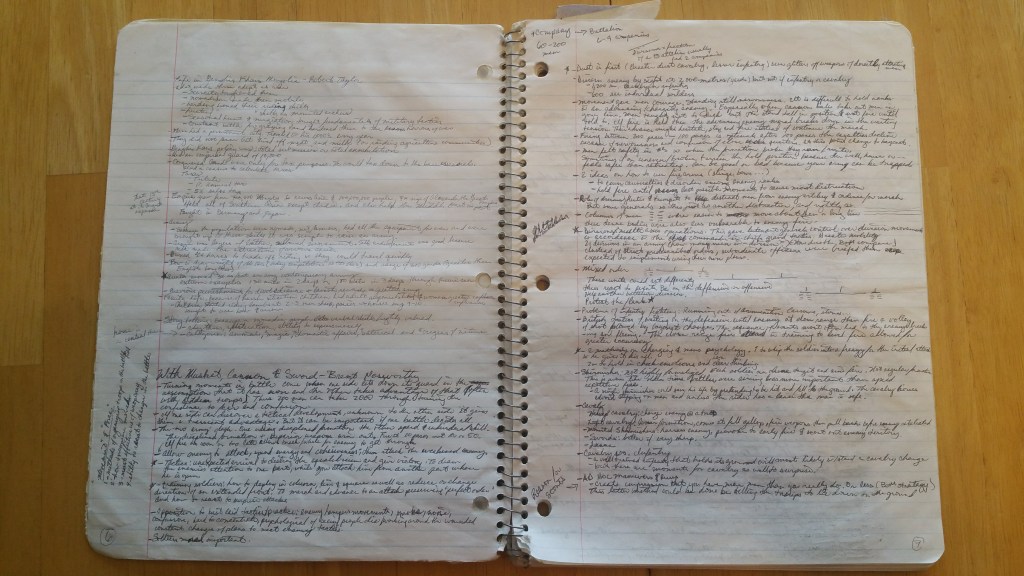 Story ideas come all the time–between laundry and cooking dinner, in the middle of helping a child with school, at 2am. To capture these ideas, I keep a notebook with me at all times, from a tiny one that I tuck into my purse to the 8″x11″ one in the kitchen. I write small, I write sloppy, but I catch the ideas; and later I type them into a more readable form.